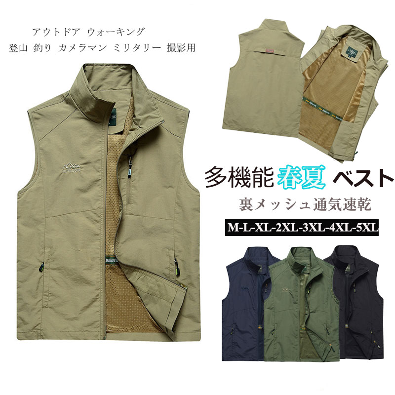 メンズ アウトドア メッシュベスト 大きいサイズ マルチポケット 軽量 通気 速乾 多機能 フィッシングベスト お釣り 山歩き 多機能 お釣り 登山服 ミリタリー 作業着