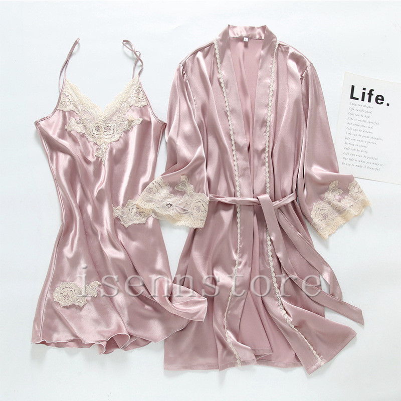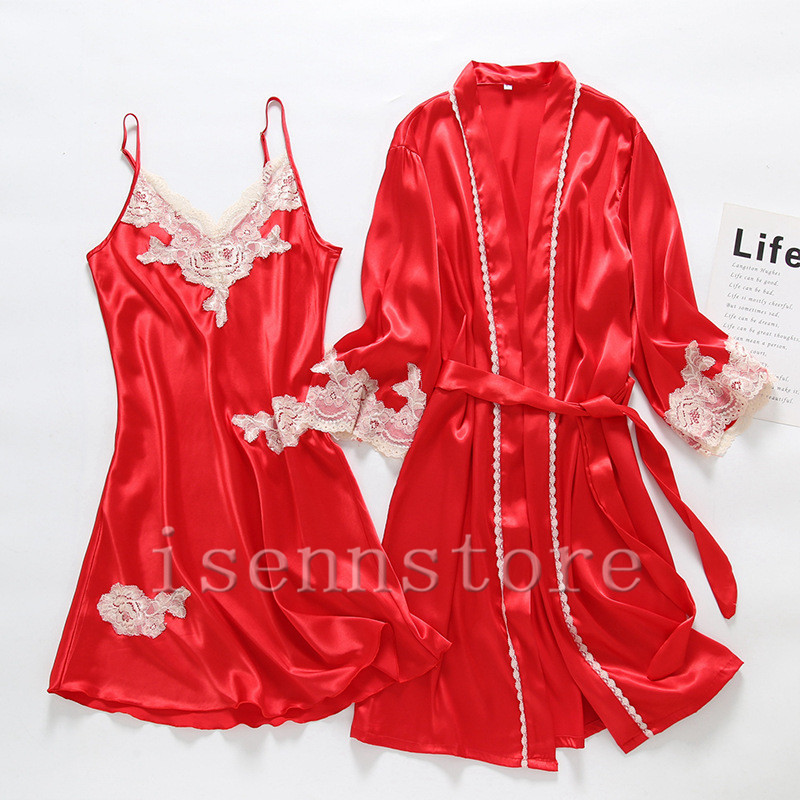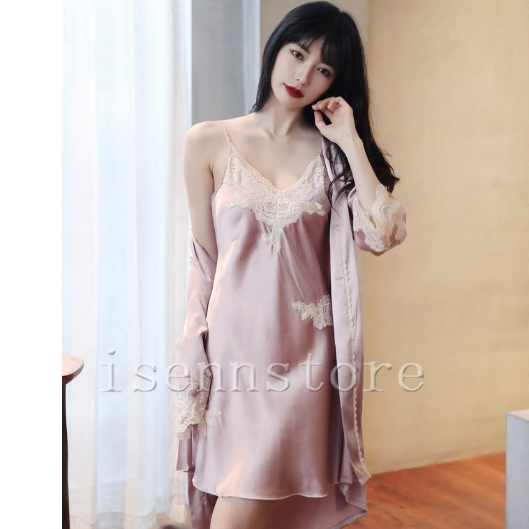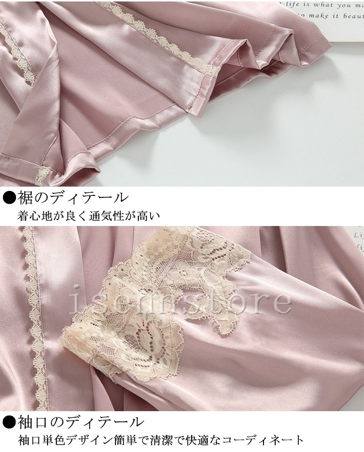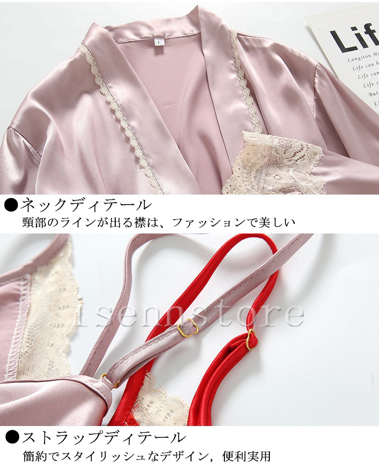 レディース ルームウェア ナイトウェア 部屋着 セクシー ガウン 前開き キャミワンピース 女性 2点セット サテン 絹パジャマ セクシー 寝巻き