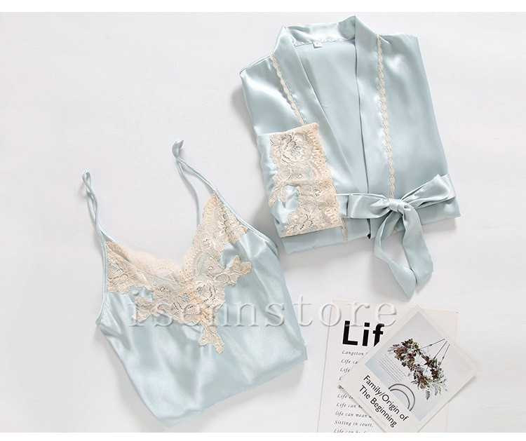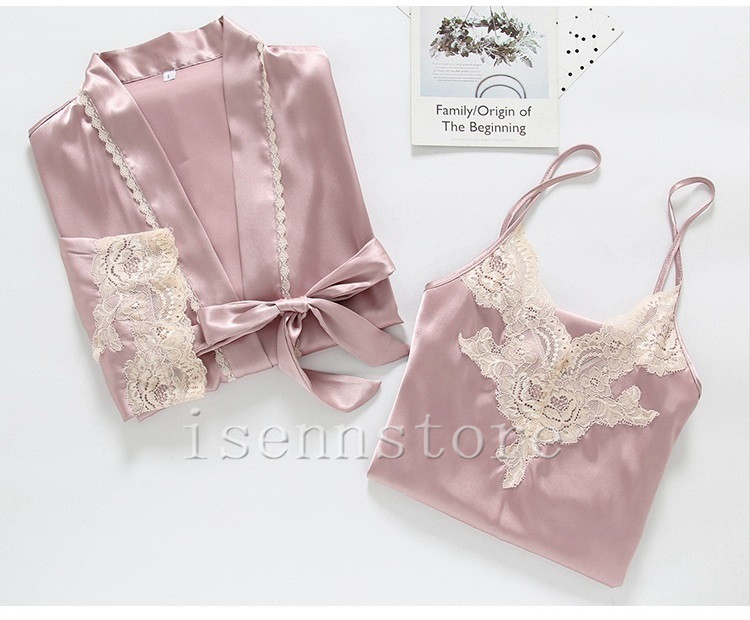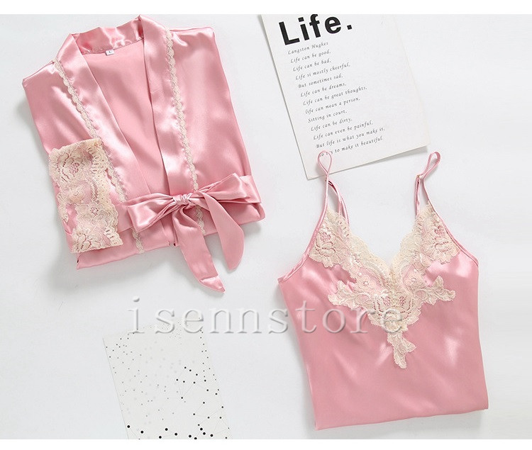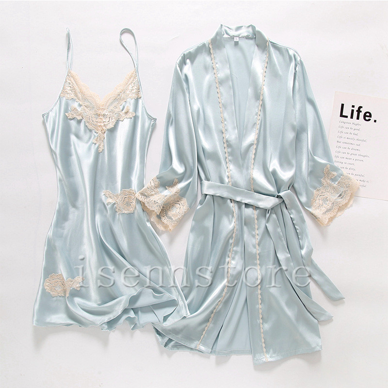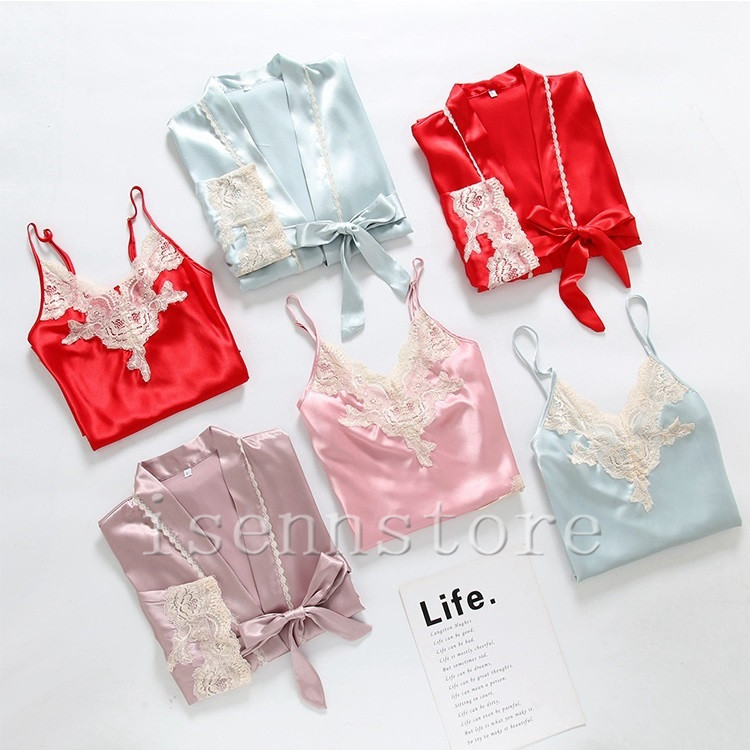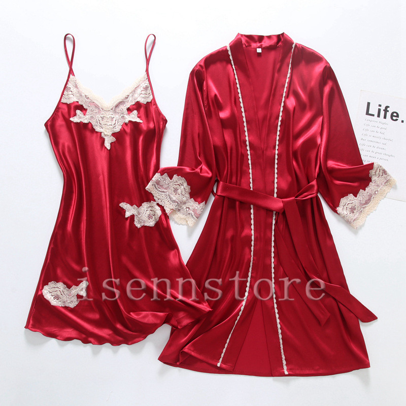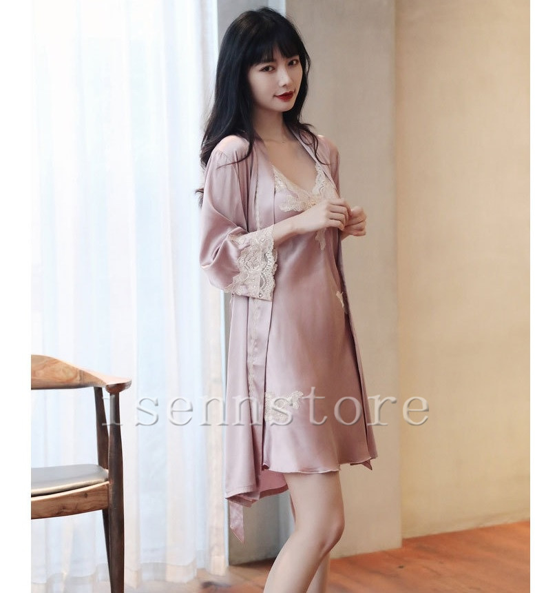 レディース ルームウェア ナイトウェア 部屋着 セクシー ガウン 前開き キャミワンピース 女性 2点セット サテン 絹パジャマ セクシー 寝巻き