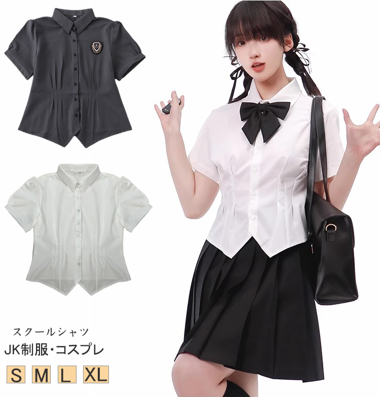 ワッペン付き 制服 シャツ 女子 半袖 スクール シャツ ストレッチ JK 制服 レディース シャツ 大きいサイズ コスプレ 制服 学生 中学生 高校生 仮装コスチューム