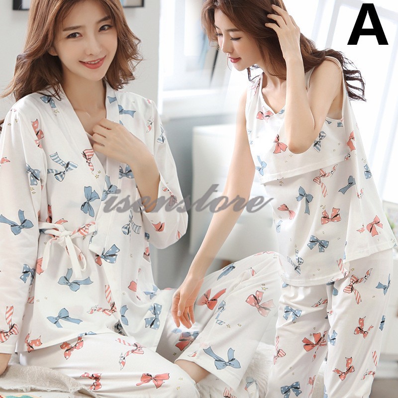 マタニティ パジャマ 秋 3点セット 入院準備 産前産後 前開き 長袖 上下セット マタニティウェア 授乳口付き 出産準備 出産祝い ルームウェア 寝巻き