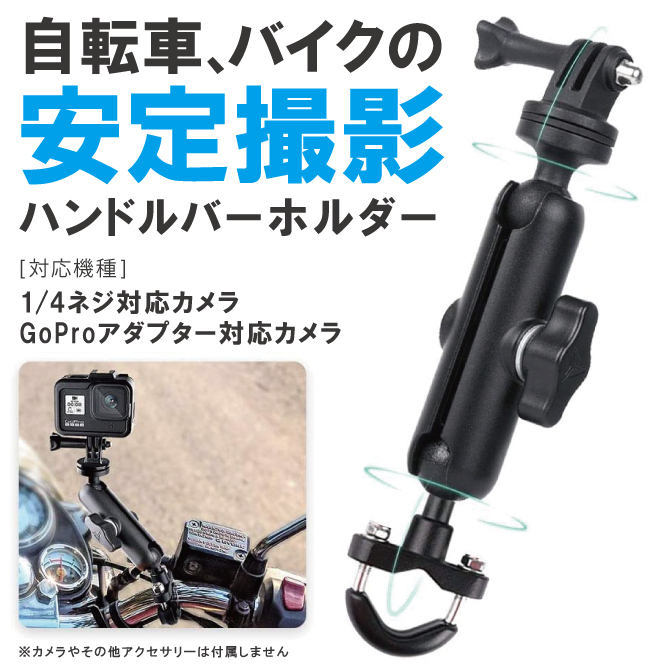 ・1/4ネジ対応のカメラ、GoProアダプター対応のアクションカメラなどでご利用頂けます。*GoProアダプターは、付属されます。