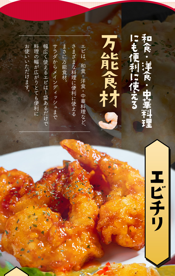 | 原材料名 | 養殖えび(バナメイ)、食塩/ポリリン酸Na、(一部にえびを含む) |