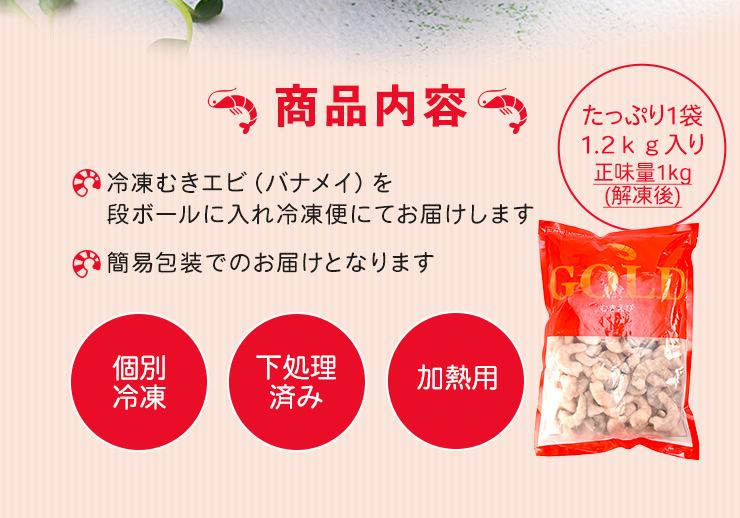 | 商品名 | むきえび(加熱用) |