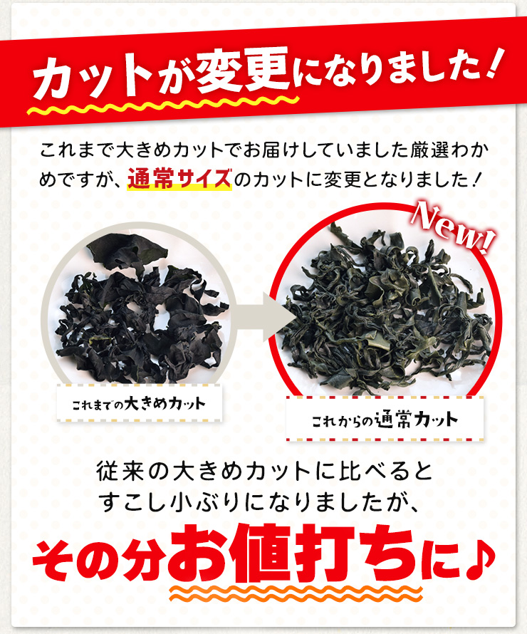 | 商品名 | 国産カットわかめ(乾物)(チャック付き袋入) |