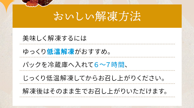 | 加熱調理の必要性 | 解凍して召し上がれます |
