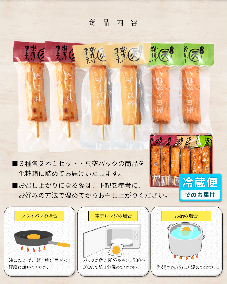 | 内容量 | 6本(タコ棒×2本、チーズ棒×2本、海老マヨ棒×2本) |