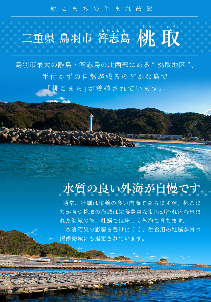 鳥羽の離島で育つ桃こまち牡蠣を身入りの良い旬の時期に冷凍しました