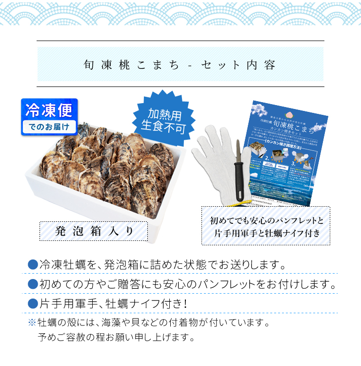 冷凍殻付き生牡蠣(加熱用)・牡蠣ナイフ・手袋付