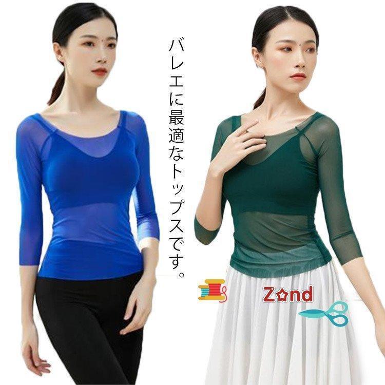 バレエシースルースパワーメッシュレオダンスヨガ長袖半袖7分袖レディース練習着ボレロ社交ダンスジャズ