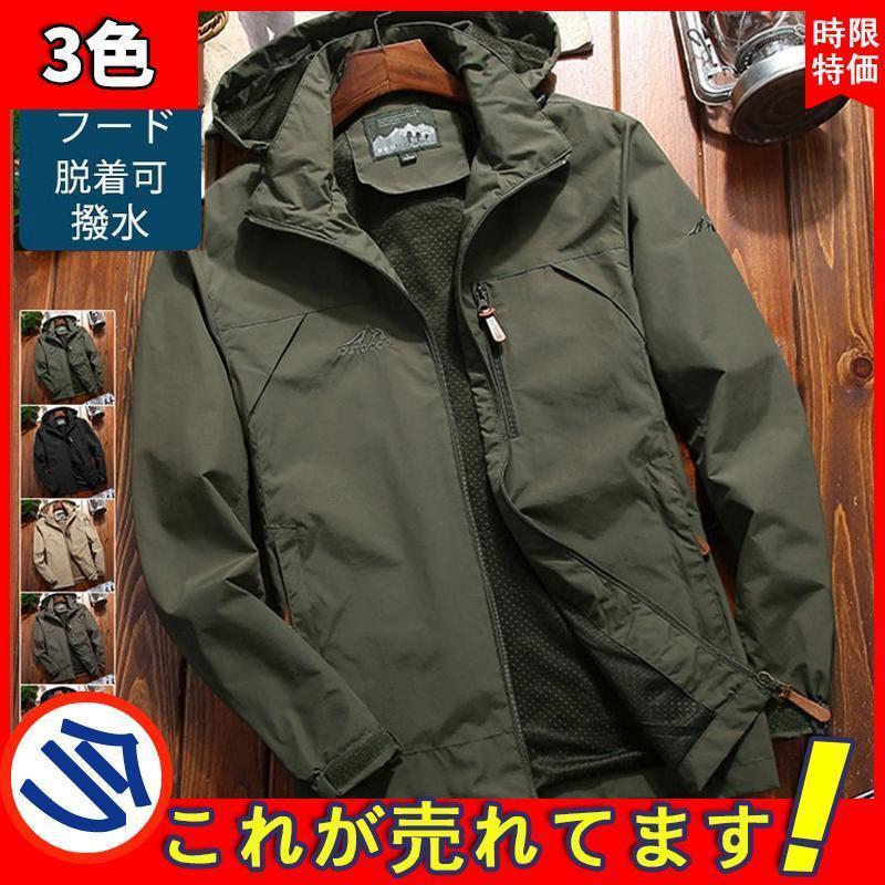 【タイムセール】マウンテンパーカー メンズ フード脱着可 ミリタリージャケット ジャケット 撥水 大きいサイズ アウトドアウエア 春秋
