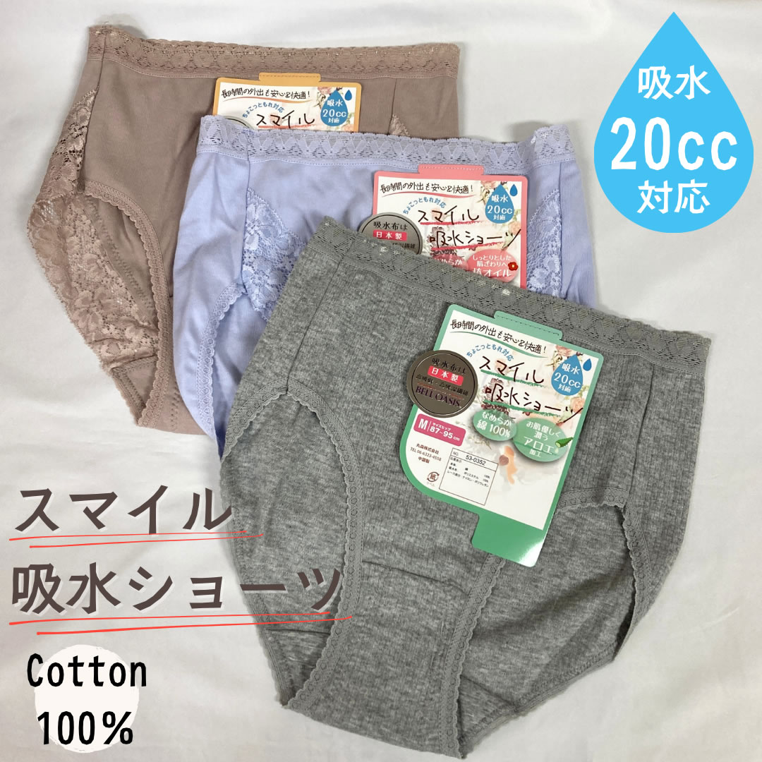 軽失禁ショーツ 快適安心 ふんわりコットン 失禁ショーツ 日本製 軽失禁 20cc 吸水ショーツ 身生地 綿100% 女性用 婦人 失禁対策 レディース