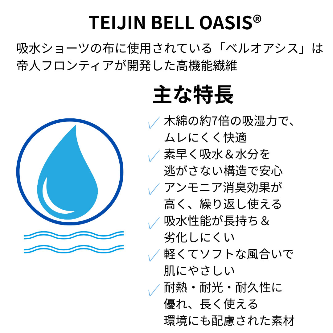 吸水部分には、「日本製・帝人フロンティア株式会社のベルオアシス」を採用。
