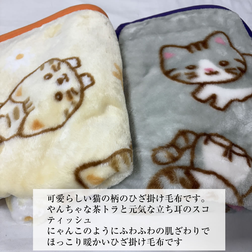 WAKUWAKU ANIMAL ひざ掛け毛布 【約70×100cm】猫柄 茶トラ スコティッシュ