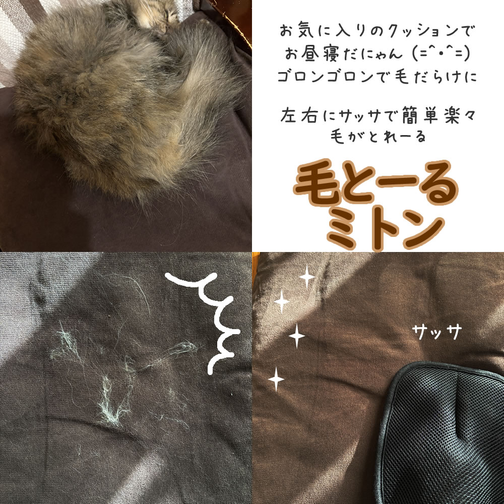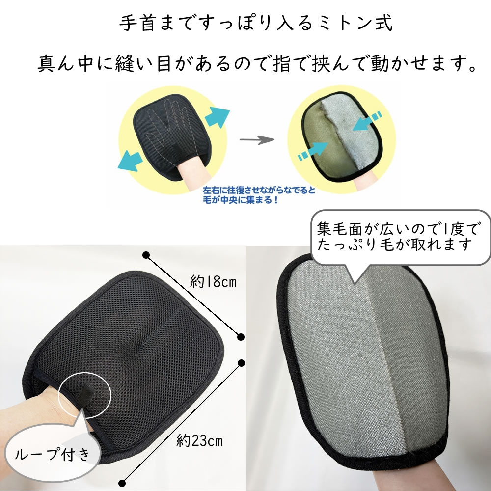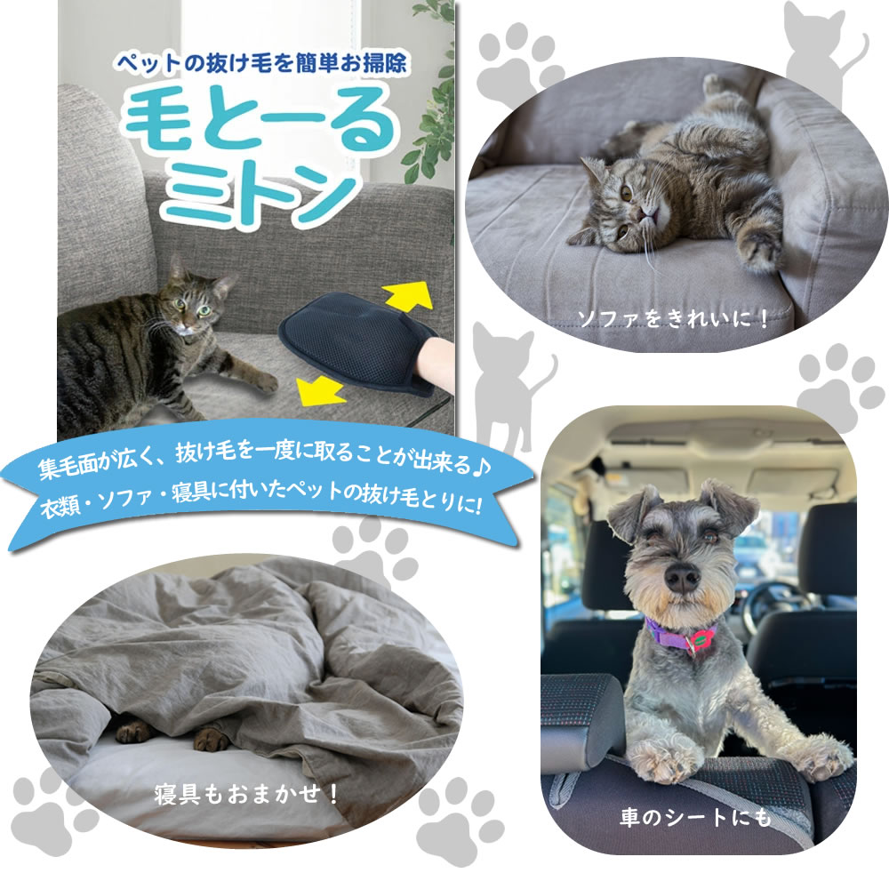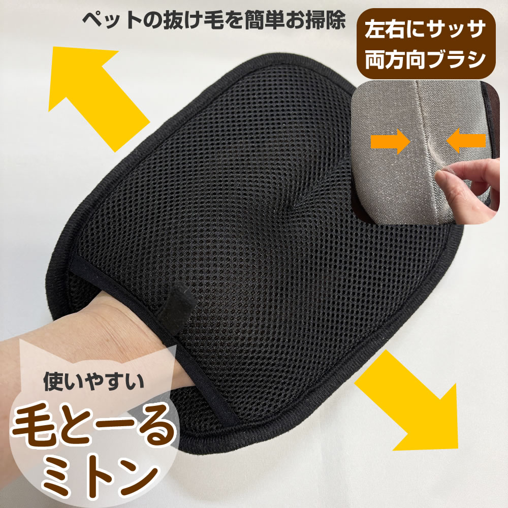 | ペットの抜け毛を簡単お掃除 毛とーるミトン 衣類、寝具、ソファ、インテリア 左右になでるだけでごっそり取れる! |