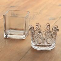 キャンドルホルダー ガラス ガラスホルダー キャンドル ライト ティーライトキャンドル クリア シンプル スクエア型 クラウン型 キャンドルグラス 結婚式 1個