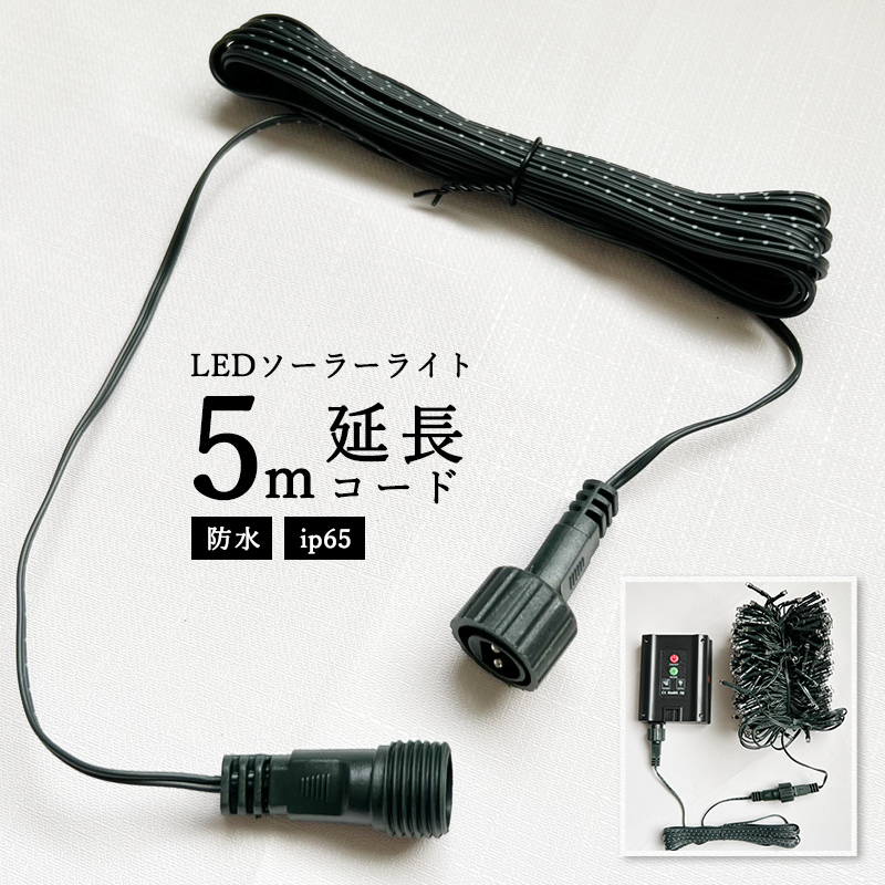 LEDソーラーイルミネーション用 延長コード 5m 延長 延長ケーブル 屋外 防水 防雨 ソーラーライト