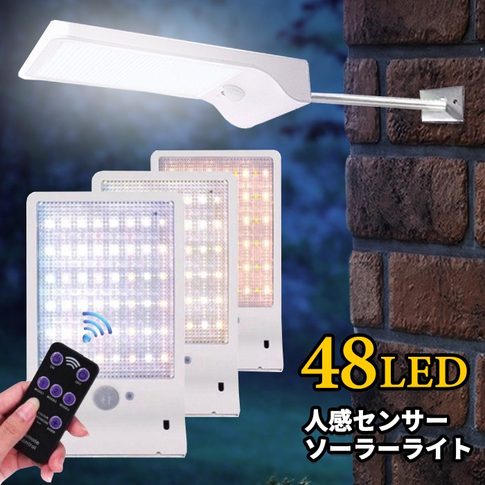人感センサーソーラーライト 48LED センサーライト リモコン付き ガーデンライト 防犯 屋外 防水 玄関 照明 庭 倉庫 モーションセンサー 送料無料