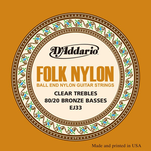 D'Addario Folkナイロン弦は高品質なナイロンを使用しています。EJ33・EJ34は低音現に80/20ブロンズワウンドを採用。 高音弦にはナイロン弦を使用しています。ボールエンド仕様の為、様々なギターに対応しており、弦交換も容易に行えます。
