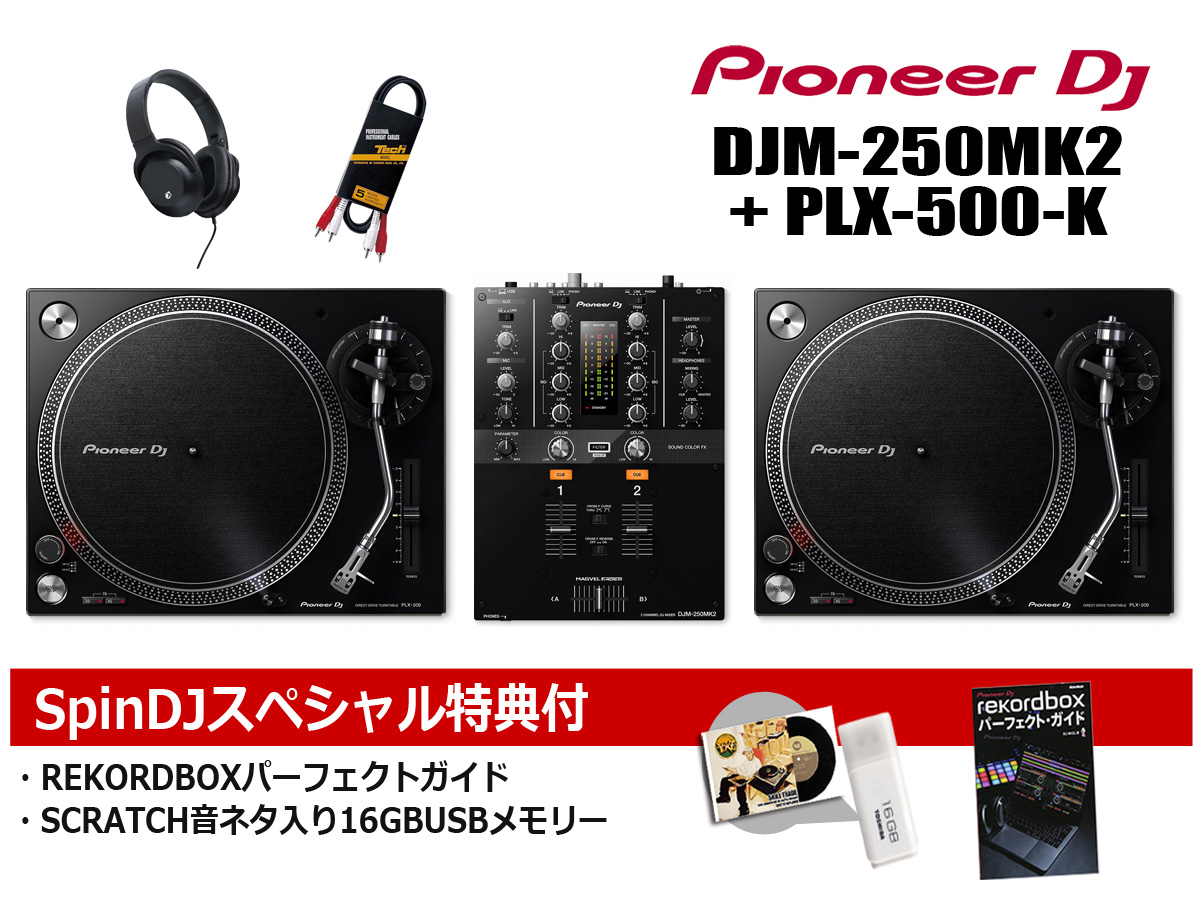 Pioneer DJ / DJM-250mk2 + PLX-500-K DJセット(スクラッチ音ネタ入USB & REKORDBOX DJ解説本サービス!)(渋谷店)