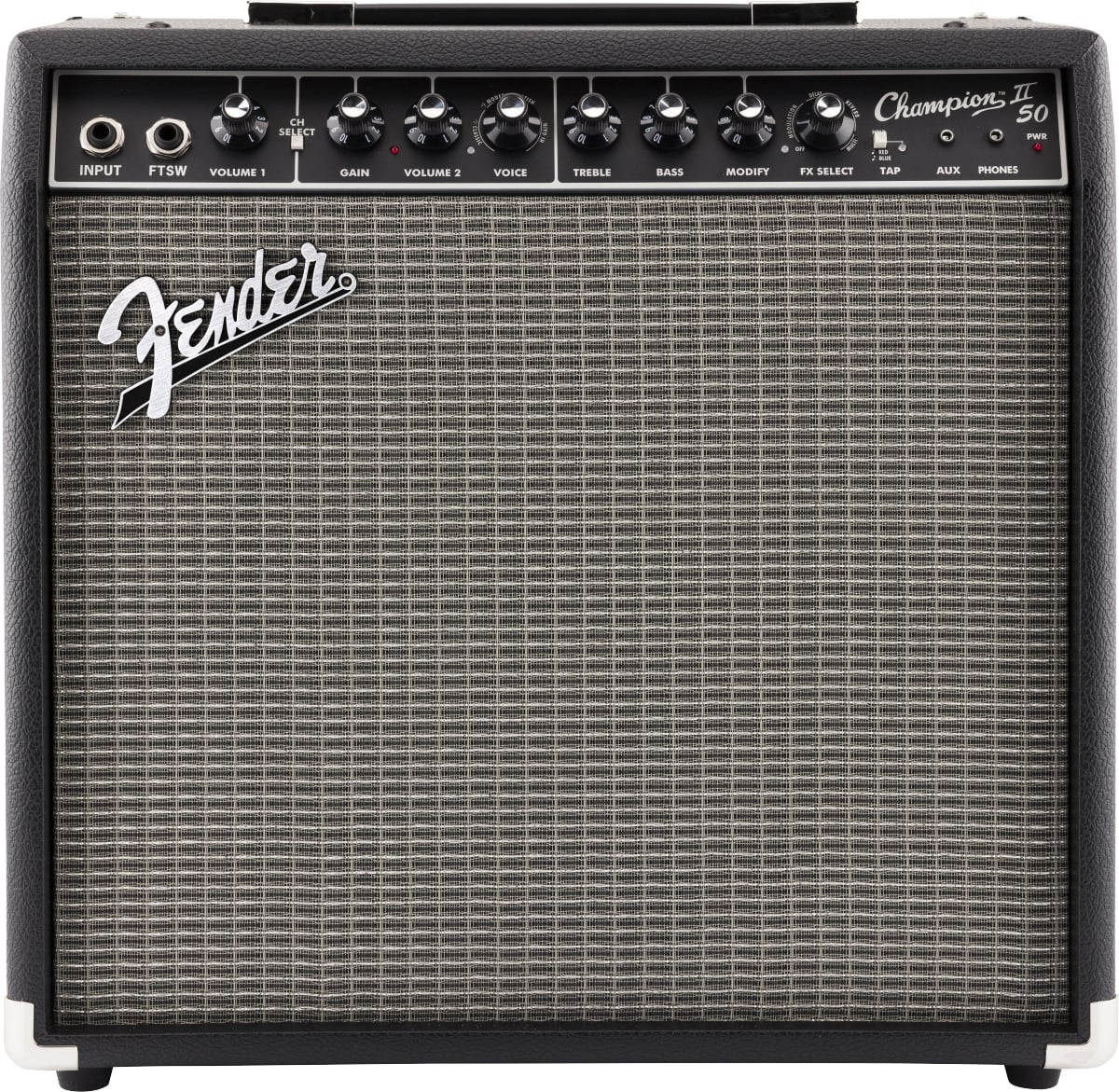 Champion II 50は、フェンダーならではの極上のクリーントーンとオーバードライブトーンに加え、ブリティッシュでモダンなディストーションまでカバーします。極めてユーザーフレンドリーでシンプルなコントロール類によりジャズ、カントリー、ブルース、メタルなどあらゆるジャンルに適したサウンドを瞬時に作り上げることが可能です。リバーブ、ディレイ/エコー、コーラス、トレモロ、ヴィブラトーンなどのエフェクトも内蔵しています。ディレイタイムやトレモロのスピードは、曲のテンポに合わせてTAPボタンで簡単に設定できます。