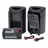 8チャンネルパワードミキサー、8インチスピーカー2本からなるオールインワン型ポータブルPAシステム
