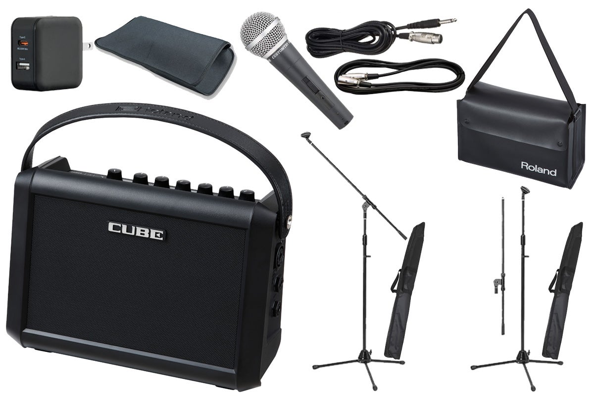 マイク、マイクケーブル、マイクスタンド2本(CUBE Street MINIスタンド用とマイクスタンド用)、専用キャリング・バッグ、USB-AC充電器がセットでお買い得!