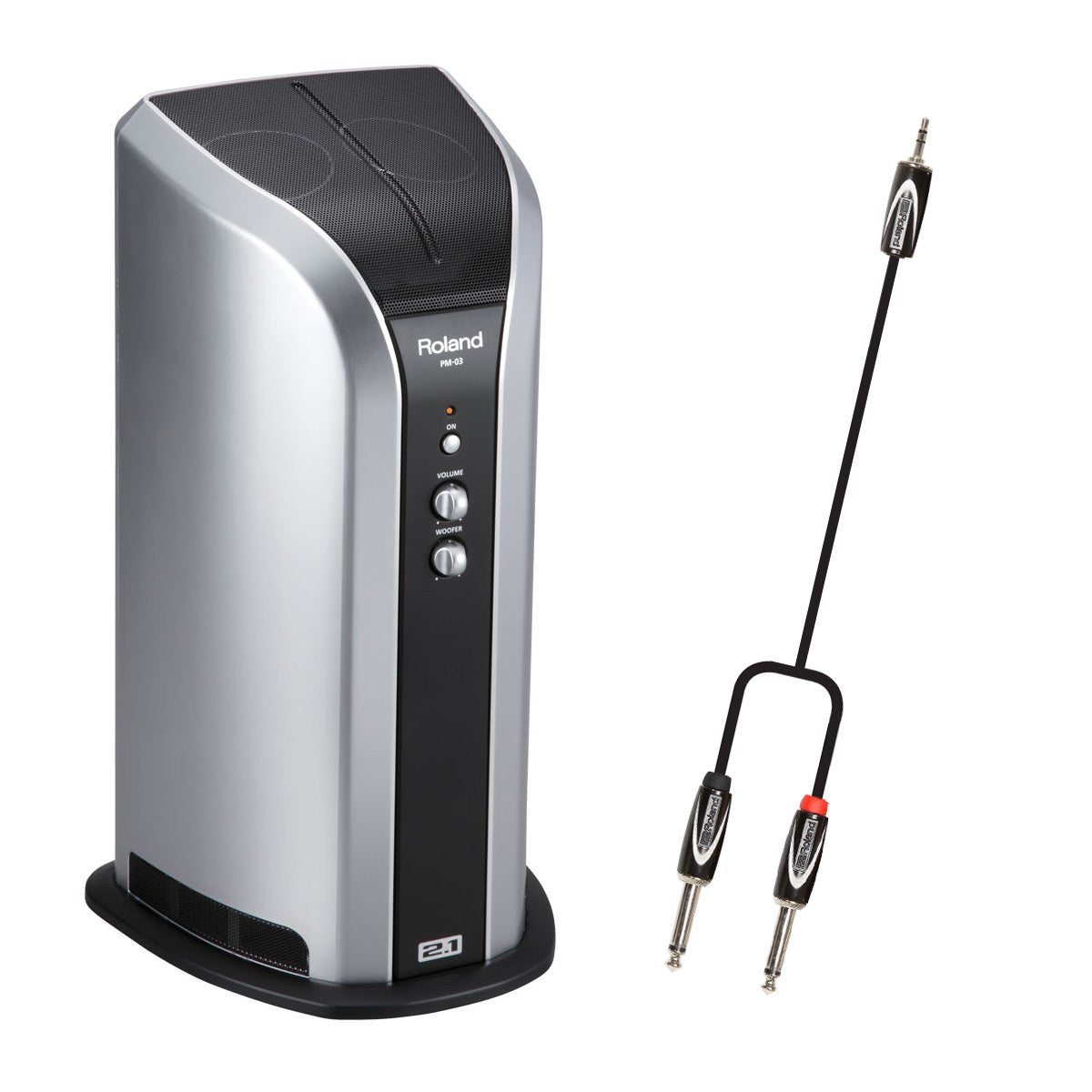 2.1チャンネル・スピーカー・システム搭載のドラム・モニターPM-03と、接続用Yケーブルのセット