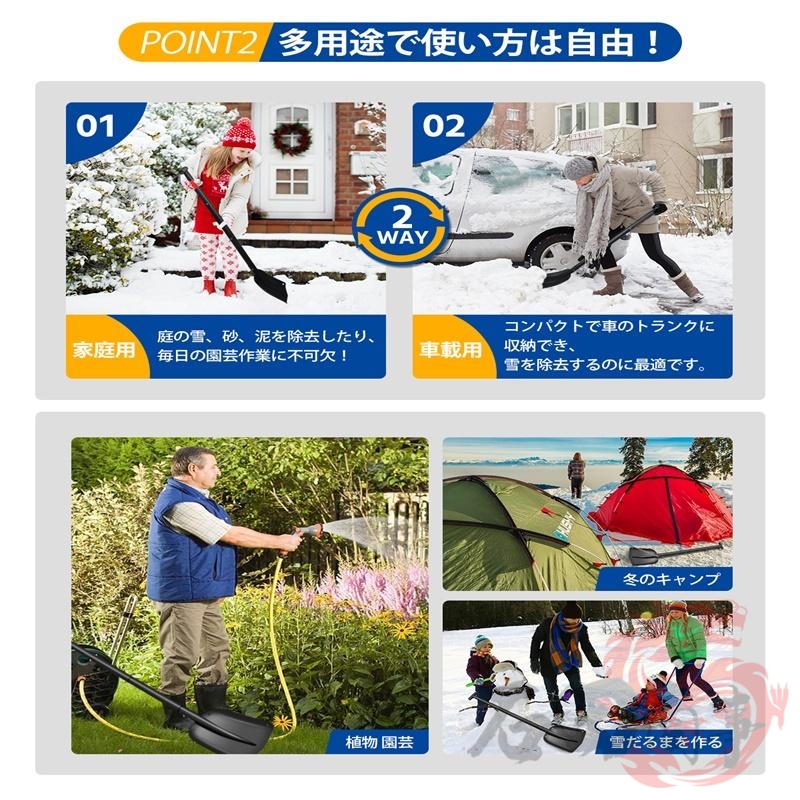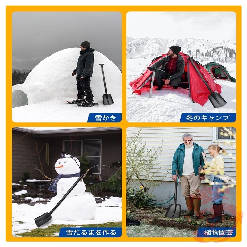 雪かきスコップは、雪かきだけでなく、園芸や土木作業など幅広い用途に使えるのも魅力です。組み立て式のコンパクトデザインで雪かきや防災時の泥だし作業、土砂の掘り起こしなど、万が一のときにいろいろな用途で使えます。雪かきのシーズンだけでなく年間を通して活用できるのが特徴です。