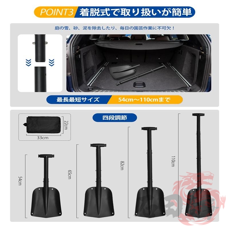 スノーショベル 伸縮式 雪かきスコップ 収納バッグ付き アルミ合金 車載スコップ 折りたたみ スノーショベル 除雪スコップ 頑丈 携帯スコップ スノーダンプ 軽量 多機能シャベル 雪かき 除雪 園芸 車載 作業 伸縮式雪かきスコップ スノーシャベル