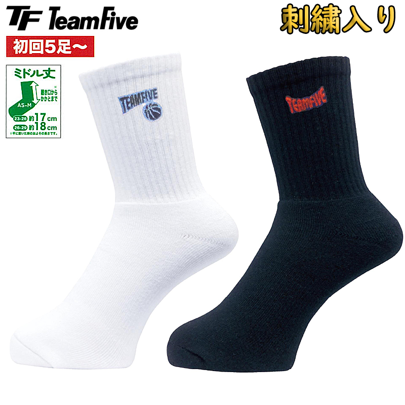 TeamFive チームファイブ チームオリジナルソックス(刺繍) ミドルソックス(サイズ:23-26cm/26-29cm)AS-M06 バスケ 靴下 チームソックス 部活 チーム名