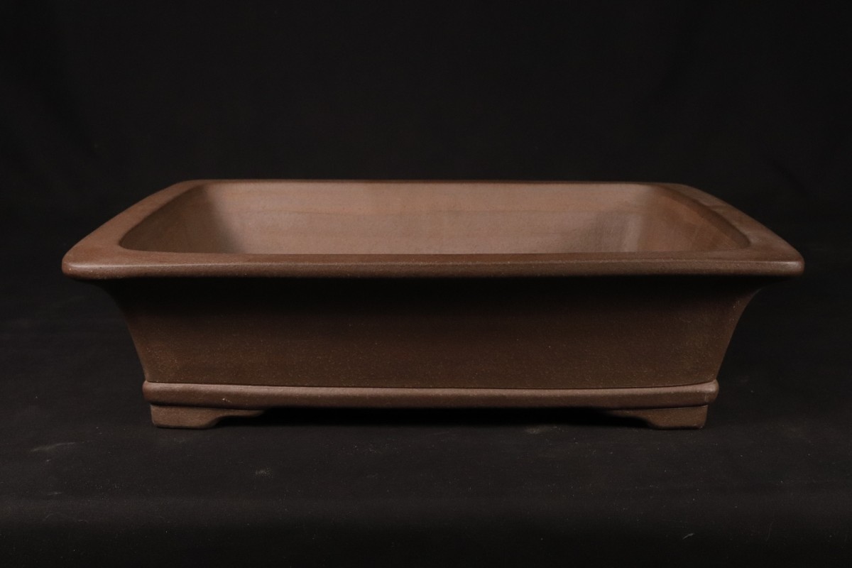 【石井盆栽】人気常滑作家 中野裕士作「裕士紫泥外縁下紐段足長方鉢」間口約36.8cm