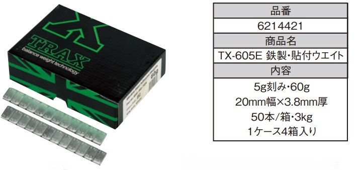・TRAX バランスウェイト 鉄製.貼り付けウェイト 19mm幅×3.8mm厚 【5g刻み/60g】シルバー 1箱 TX-605E