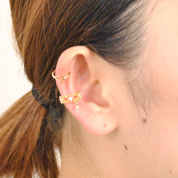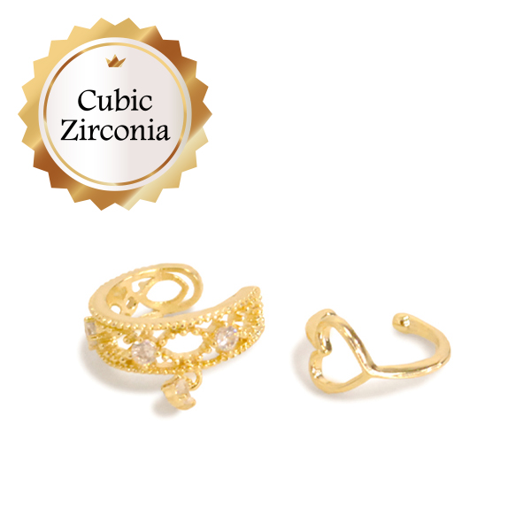 キュービックジルコニア ゴールド イヤーカフ ハート 2点セット