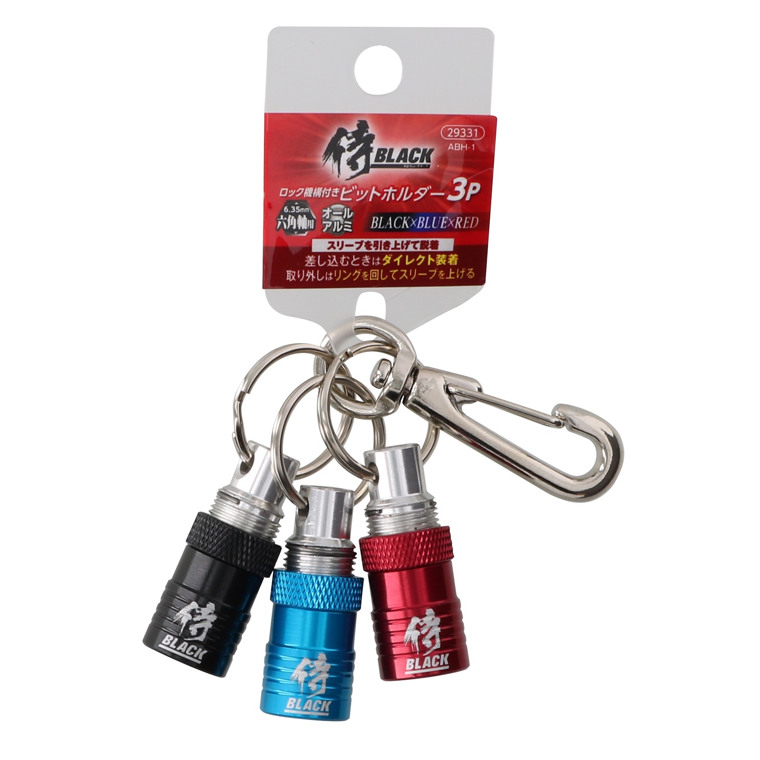 高儀 侍BLACK アルミ ビットホルダー ロック機構付き ABH-1 ブラック×ブルー×レッド 3P