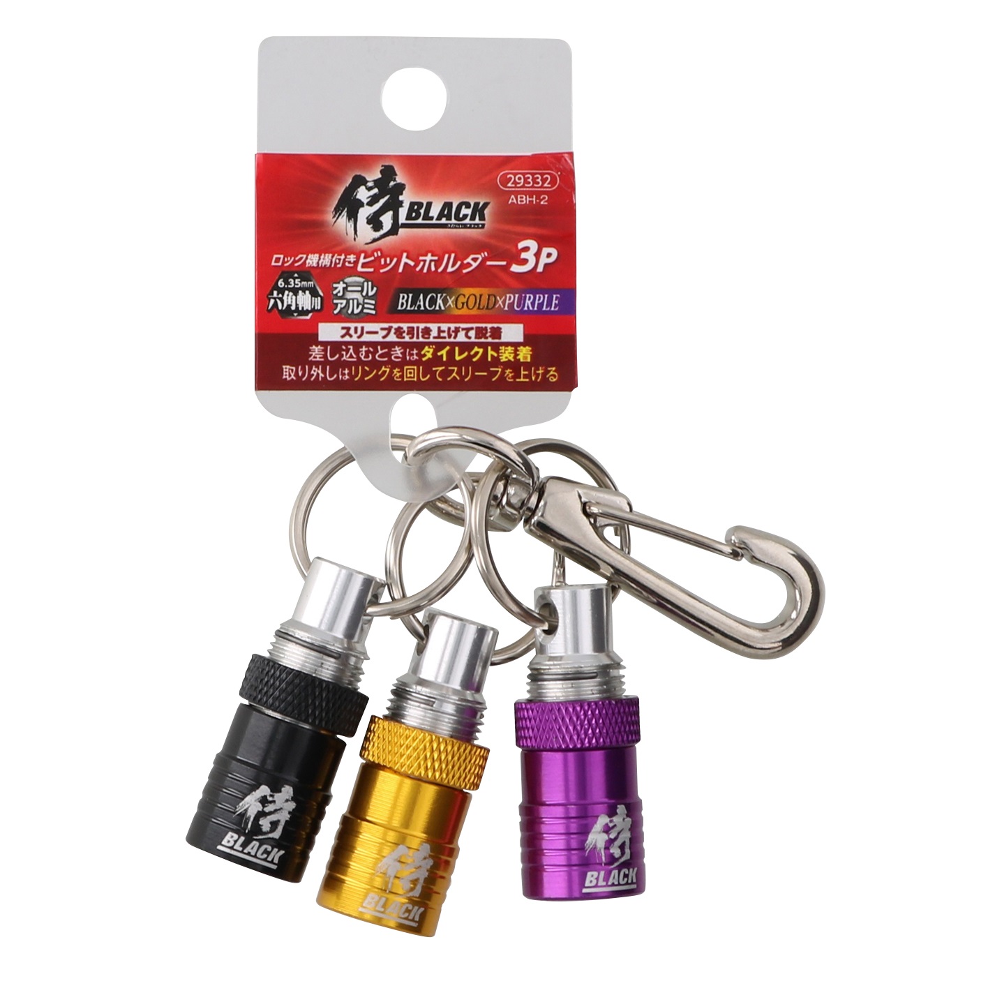 高儀 侍BLACK アルミ ビットホルダー ロック機構付き ABH-2 ブラック×ゴールド×パープル 3P