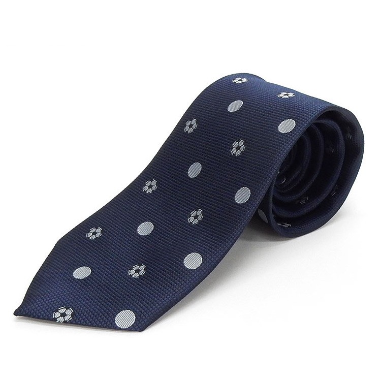 スポーツ応援タイ サッカー 勝ち色(紺)×銀 コインドット 日本製ネクタイ 甲州織 洗濯機OK メール便OK NSP51-KC