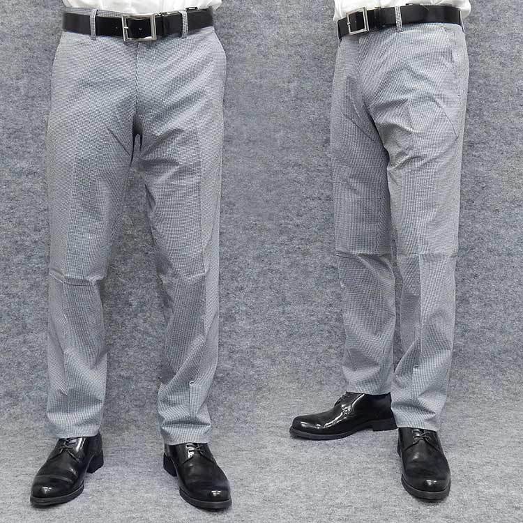 涼しい 春夏★スリムノータック スラックス 白黒/ギンガムチェック ウエストストレッチ ストレッチ素材 ビジネスパンツ 76cm-100cm OS2331-2