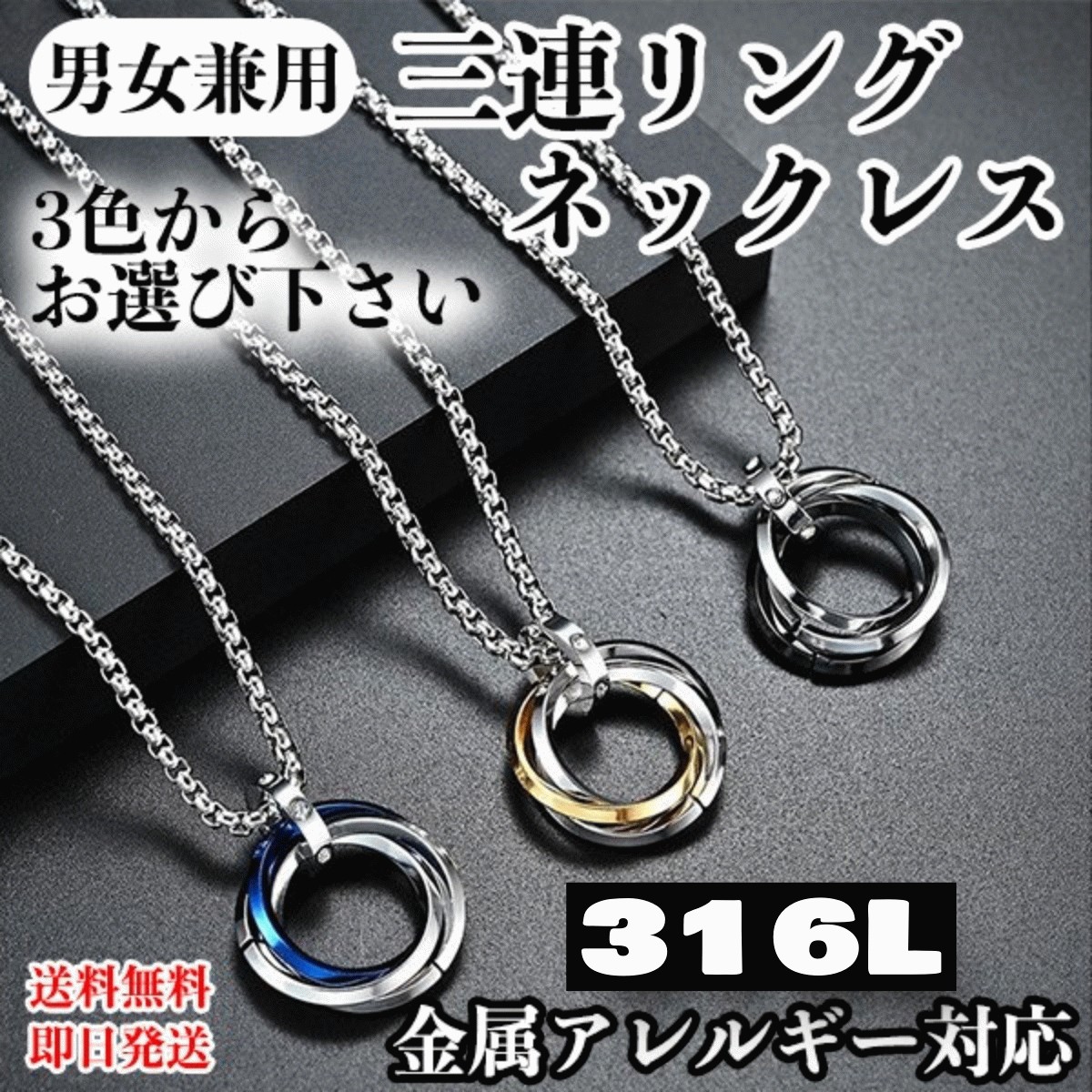 ネックレス メンズ ネックレス レディース 三連リング スリーリング 316Lサジーガルステンレス 金属アレルギー対応 男女兼用