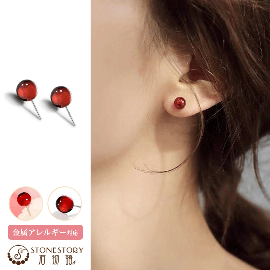 毎日のコーディネートをさりげなく華やかに演出する『ピアス レディース シンプル 一粒ピアス ガーネット』のご紹介です。