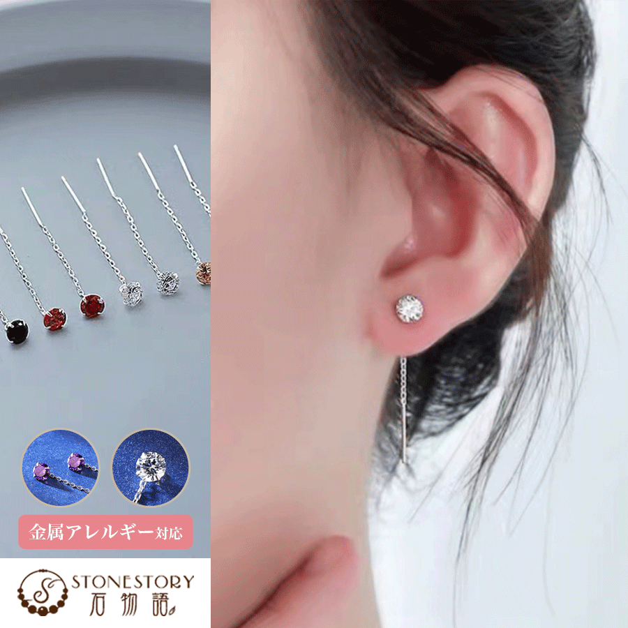 ストーン部分には、まるで本物のダイヤモンドのように美しく輝くCZキュービックジルコニア(約5mm)を使用。上品でありながら存在感のある一粒デザインは、光を受けてキラリと輝き、顔まわりを華やかに演出します。さらに、耳の後ろでチェーンが優しく揺れるスタイルは、動きに合わせてフェミニンな印象をプラスし、女性らしさを引き立てます。