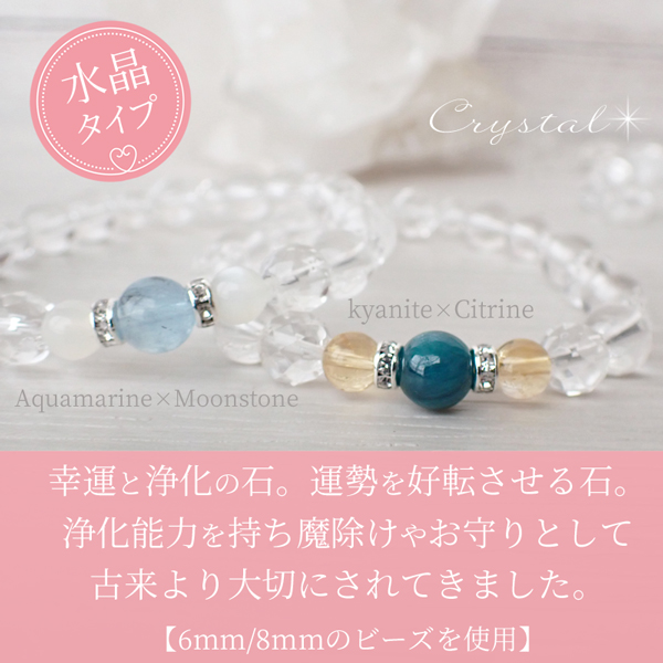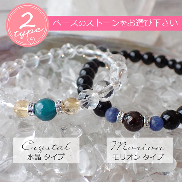 水晶タイプorモリオンタイプ、ブレスレットのサイズ、ラッピングの有無をお選び下さい。