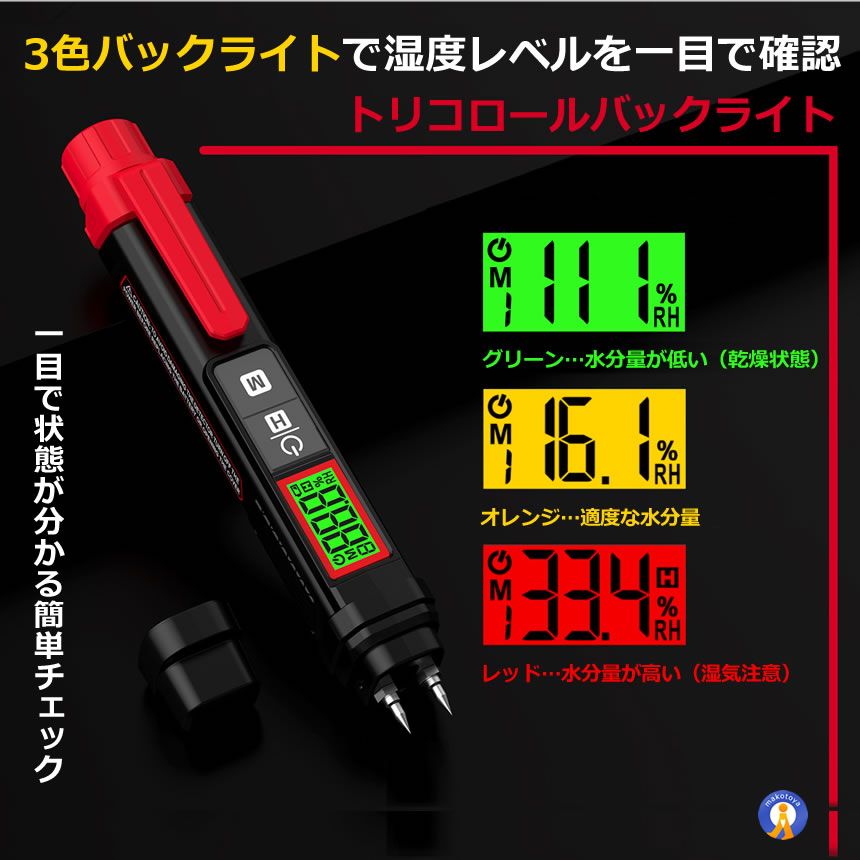 3色バックライトで湿度レベルを一目で確認
