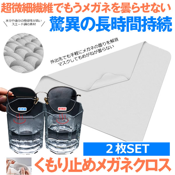 高品質のマイクロファイバー素材(超微細繊維)を使って、メガネを拭くと、くもらない便利なクロスです。水分や油分の吸収性が高いスエード調の機能素材です。レンズの汚れなども落とすことができる為、メガネクリーナーとしても使用することができます。