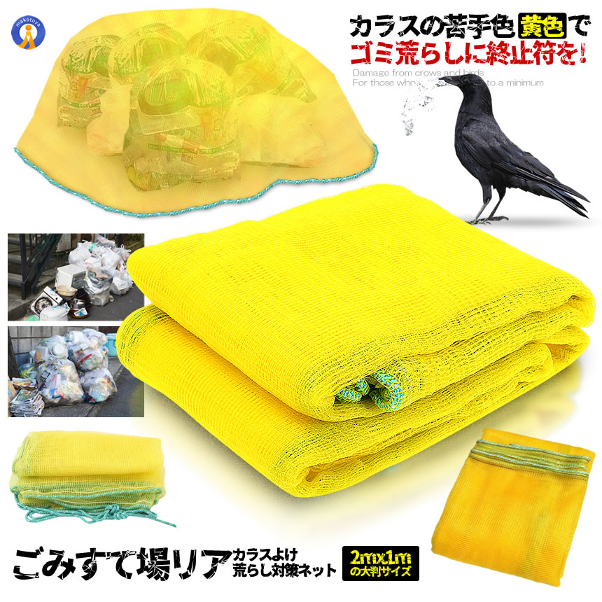 カラス除けネット ゴミ捨て場リアネット ネット黄色 2mx1m カラスよけ ゴミネット カラス対策 ゴミ置場 町内会 防鳥ネット SUTEBARRIA