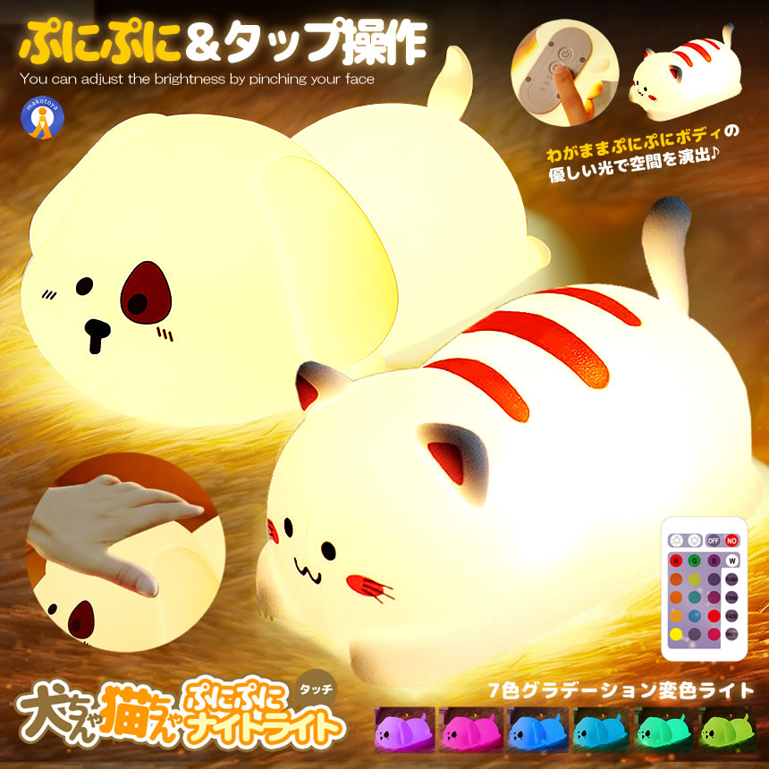 ナイトライト 猫 犬 7色カラー 変色 2段階明るさ調節 照明 ランプ デスクライト 寝室 NIGHTRAI