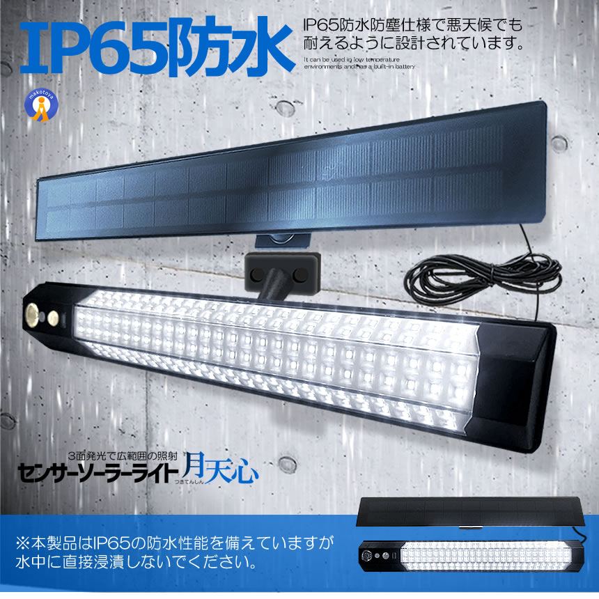 ソーラーライトは昼光色7700Kの超高輝度LEDを158個採用し