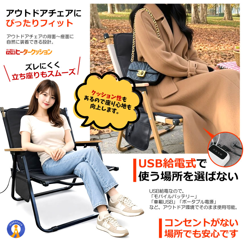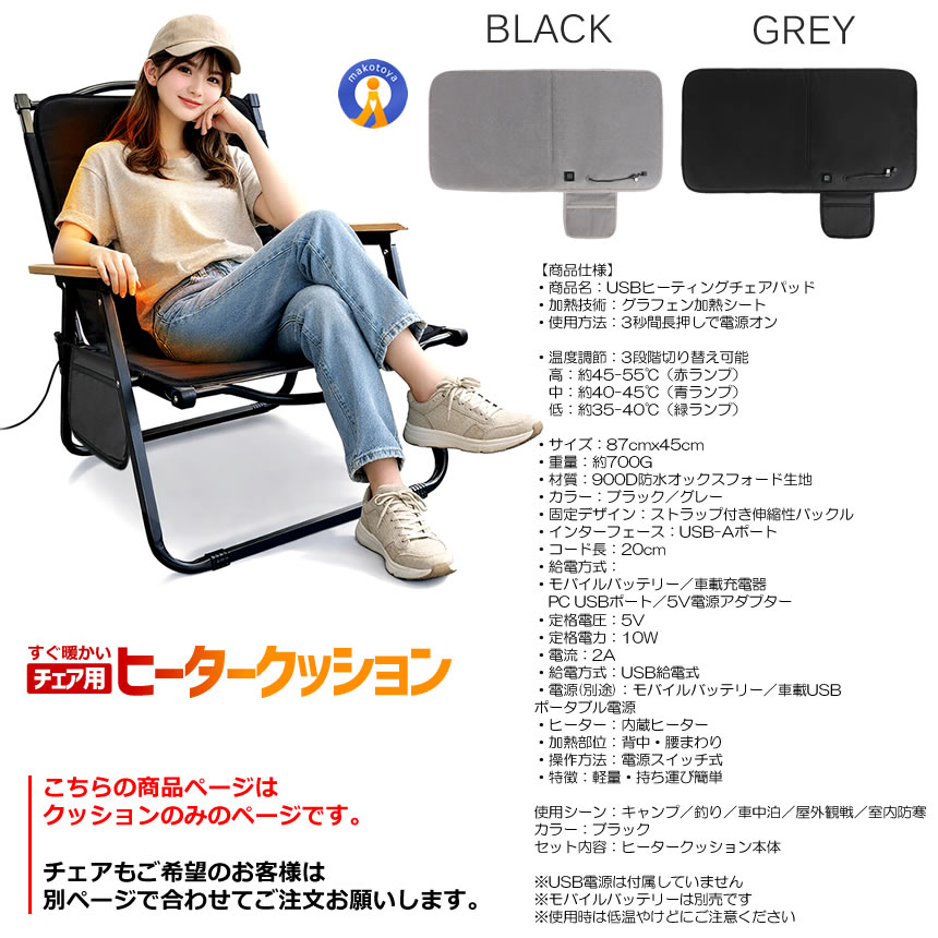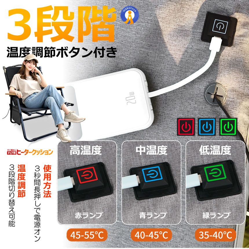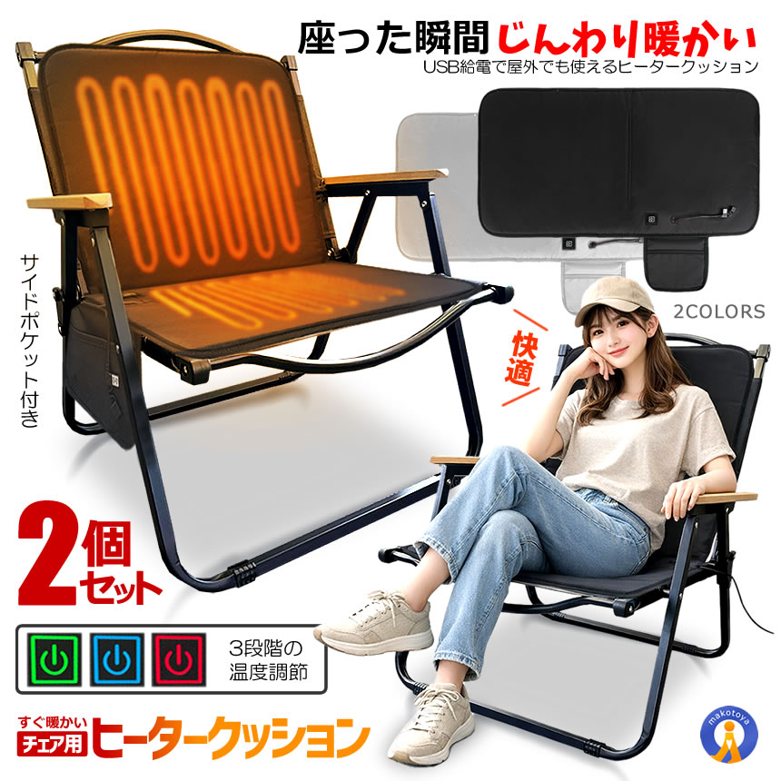 2個セット アウトドアチェア USB ヒータークッション 3段階温度調節 アウトドア ヒーター チェア ヒーター キャンプ USBHITA