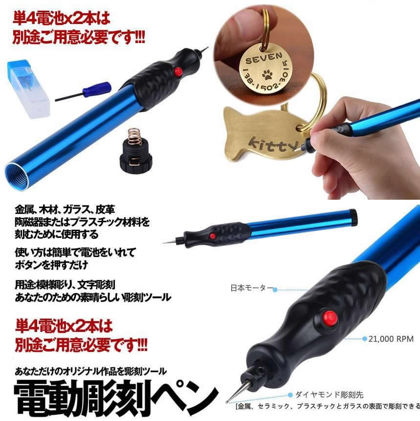 金属、木材、ガラス、皮革陶磁器またはプラスチック材料を刻むために使用する使い方は簡単で電池をいれてボタンを押すだけ用途:模様彫り、文字彫刻あなたのための素晴らしい彫刻ツール送料無料※北海道は+215円UP、離島地域及び沖縄県は+2000円UPにて承ります。