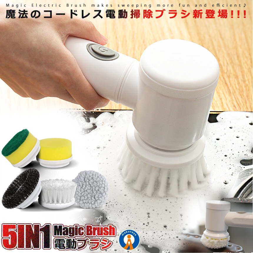 電動ブラシ 5IN1 バスポリッシャー 充電式 コードレス 風呂掃除 床掃除 お風呂掃除 キッチン台所汚れ お皿洗い バスブラシ 洗車 MAHOBURASHI